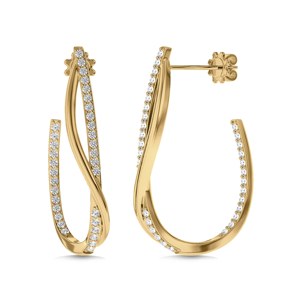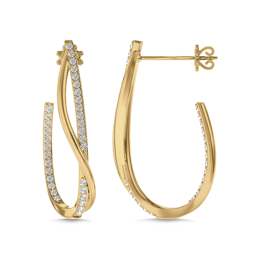These 14kt 1/3ctw diamond j hoop earring set 1/3 ctw of near-colorless diamonds with eye-clean SI clarity — genuine sparkle without overpaying in solid 14k gold — real diamond quality in a wearable design that works every day.