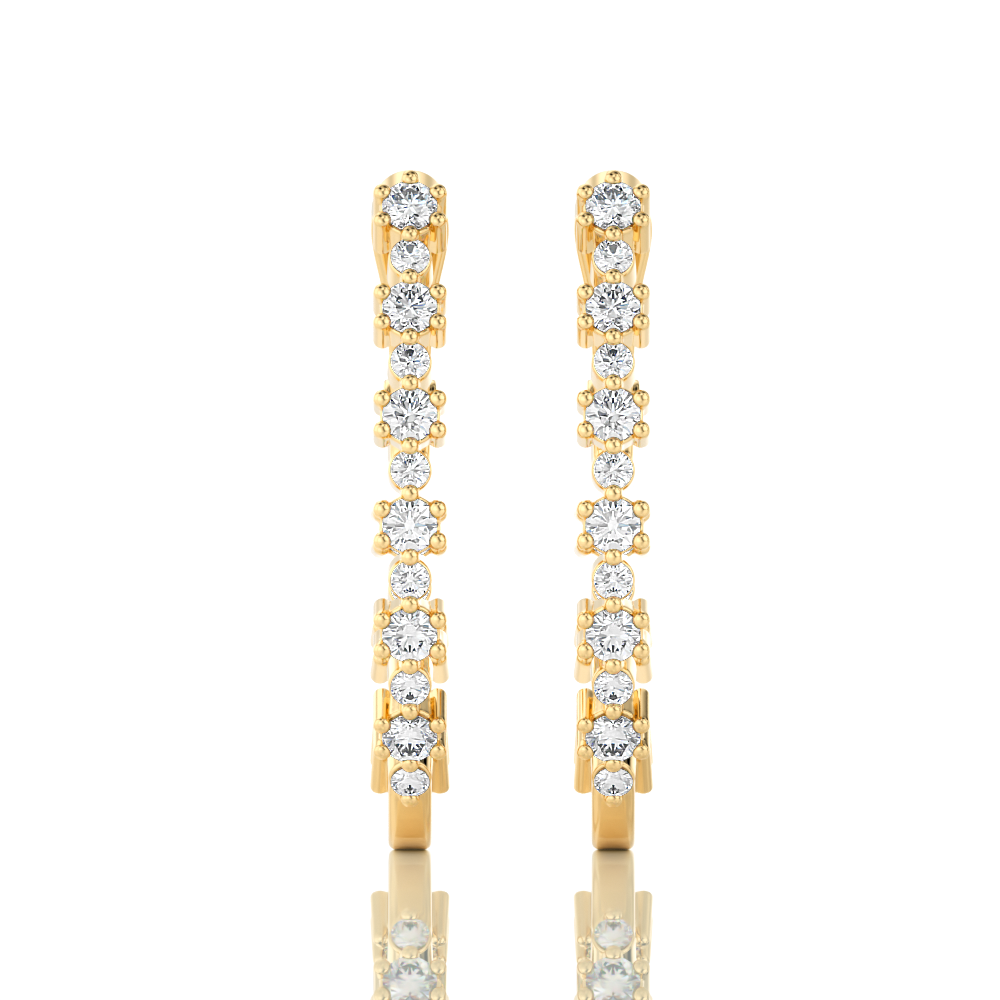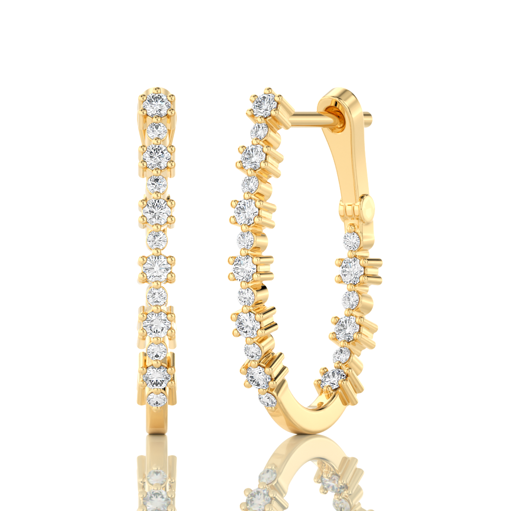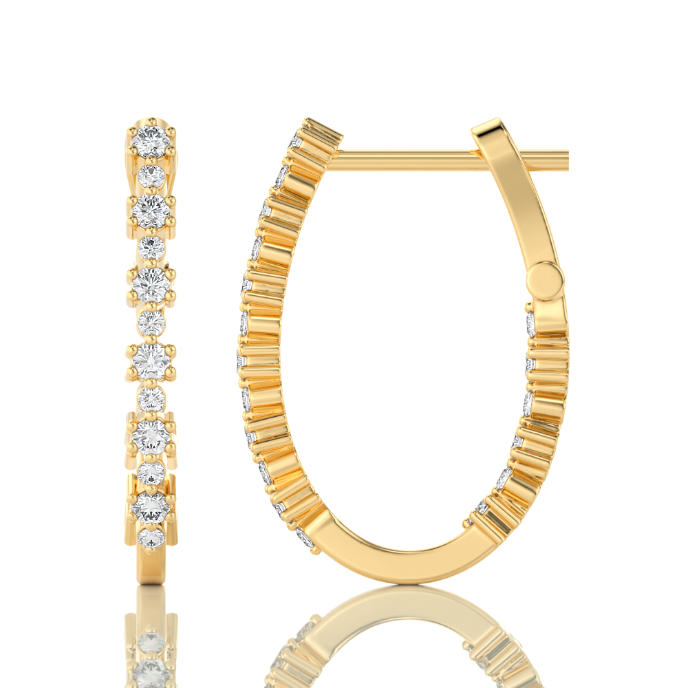 These 14kt 1/2ctw diamond hoop earring set 1/2 ctw of F/G, SI clarity — bright, near-colorless stones that deliver genuine sparkle in solid 14k gold — real diamond quality in a wearable design that works every day.