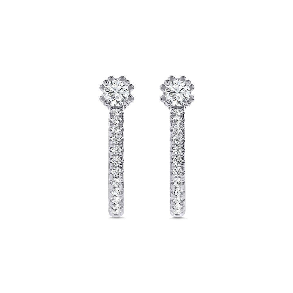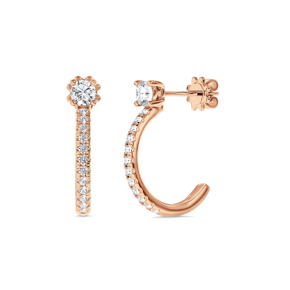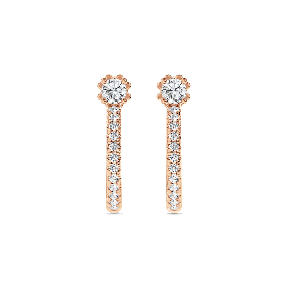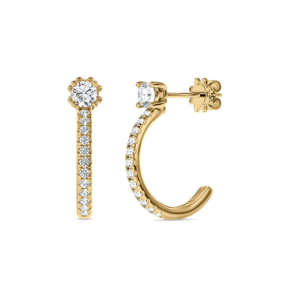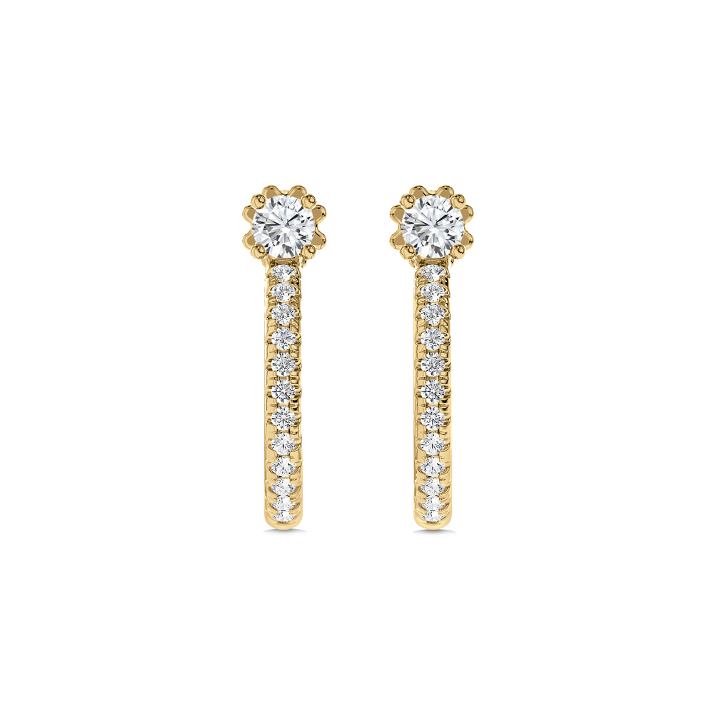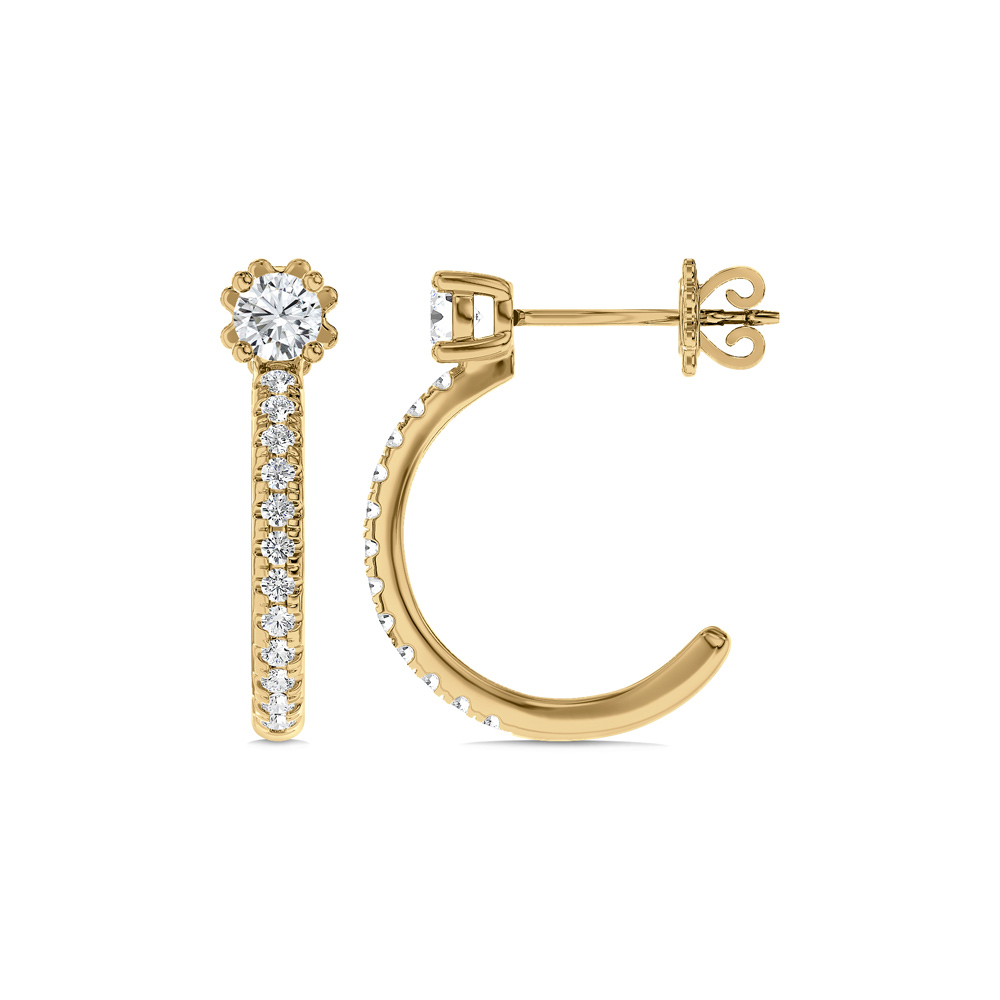 These 10k diamond j hoop earrings set 1/4 ctw of near-colorless and eye-clean, so they face up bright without paying for invisible perfection in solid 10k gold — real diamond quality in a wearable design that works every day.